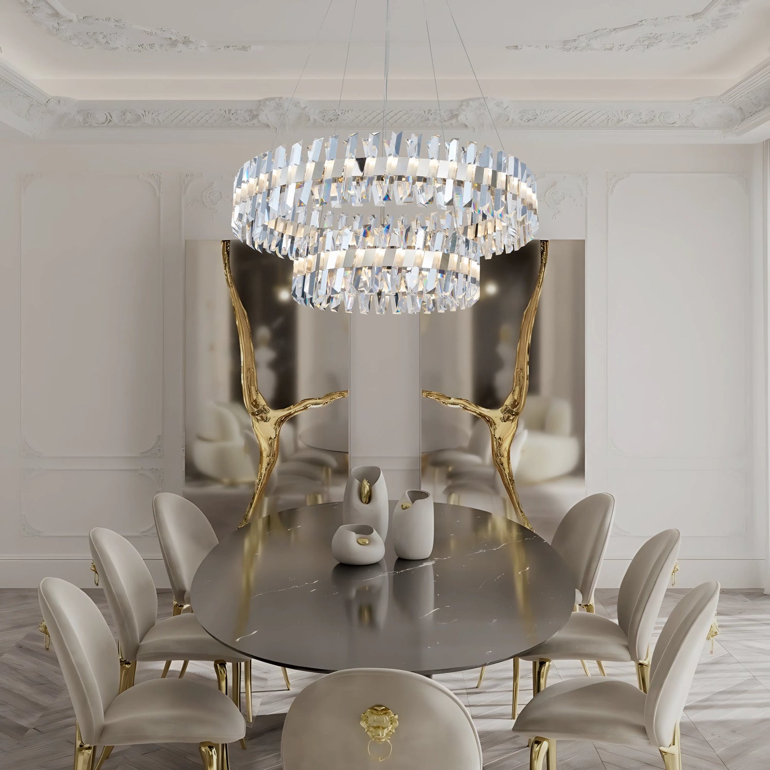 Inspired by the timeless beauty of Cartier, every piece in this collection is a testament to impeccable craftsmanship and stunning design. The radiant K9 crystals and sleek finishes create a harmonious ambiance, perfect for transforming any space into a sanctuary of light and style.