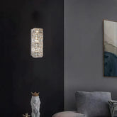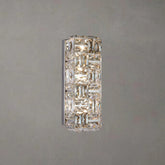 Available in two sizes - Medium and Large. The Bulgari Sconce is equipped with energy-efficient G4 bulbs to provide a warm, inviting glow. Designed for functionality and beauty, this sconce is perfect for accentuating walls in hallways, living rooms, or bedrooms. Its compact design and striking crystal arrangement transform ordinary spaces into extraordinary settings.
